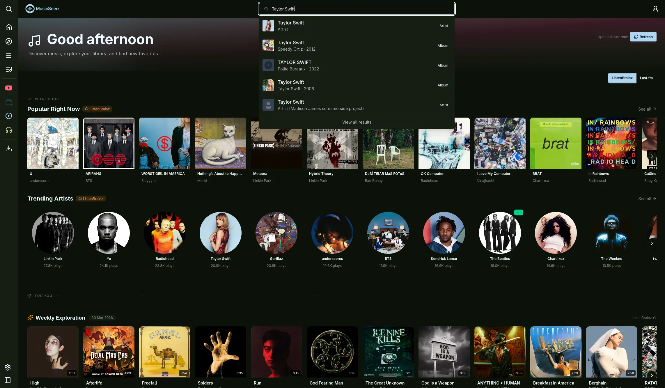 # docker-compose.yml services: musicseerr: image: ghcr.io/habirabbu/musicseerr:latest container_name: musicseerr environment: - PUID=1000 - PGID=1000 - PORT=8688 - TZ=Etc/UTC ports: - "8688:8688" volumes: - ./config:/app/config - ./cache:/app/cache # - /path/to/music:/music:ro # optional, for local file playback restart: unless-stoppeddocker compose up -d Container musicseerr started Visit http://localhost:8688Works with your favorite services